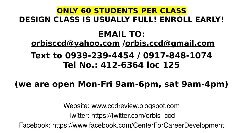 CCD announces the schedule for the review classes for the Architecture Board Exams for JUNE 2017. The review classes consist of the basic review (comprehensive consisting of all subjects in the exam), design review (with focus on Rule 7&8 of the NBCP and estimating), and the refresher class (consisting of review of common questions given in the board exams for all subjects). Early Bird Discounts and Discounts for UAPSA and UAPGA officers and members, as well as Honor Graduates and Sons/Daughters of active UAP members are available. Group Packages at lower rates is also available.
